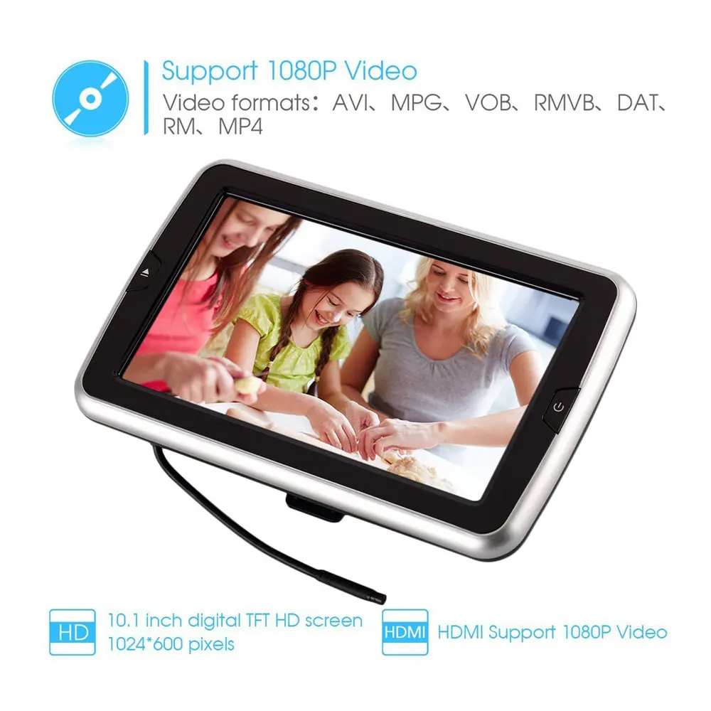 Gallery for 10.1 inch Ultra-thin HD 720P Digital TFT Screen Ultra-thin Design Car Headrest DVD Player X10D 806D 606D Multimedia Player