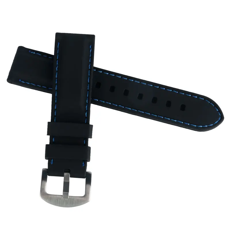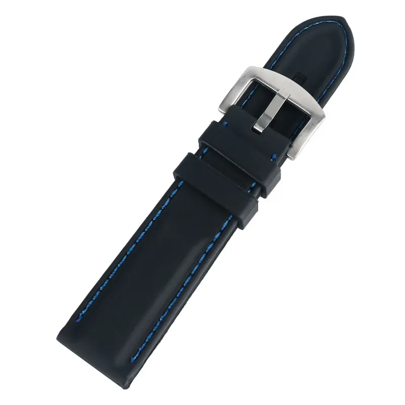 Gallery for Black Silicone Rubber Soft Waterproof Military Blue Line Stitching Watchband 20mm/22mm/24mm/26mm Watch Strap Band Pin Buckle