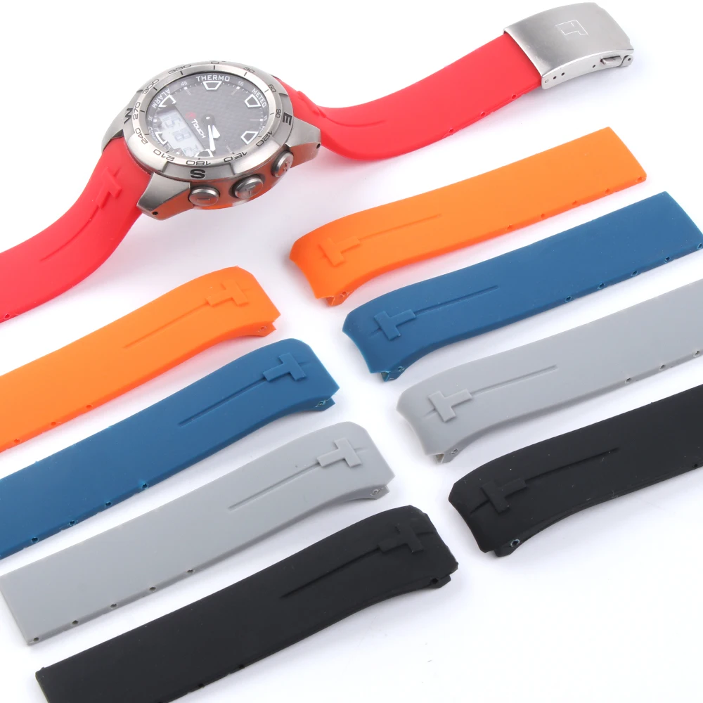 Related Items with Silicone WatchBand 20mm 21mm Sports For Touch T013 T047 Rubber Red Strap T-Sport Watchband Waterproof T013.420 T047.420 Man :