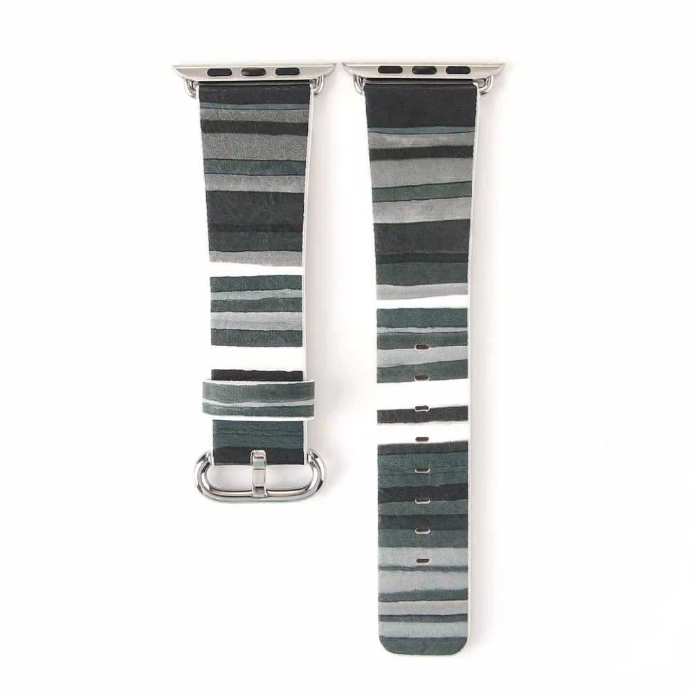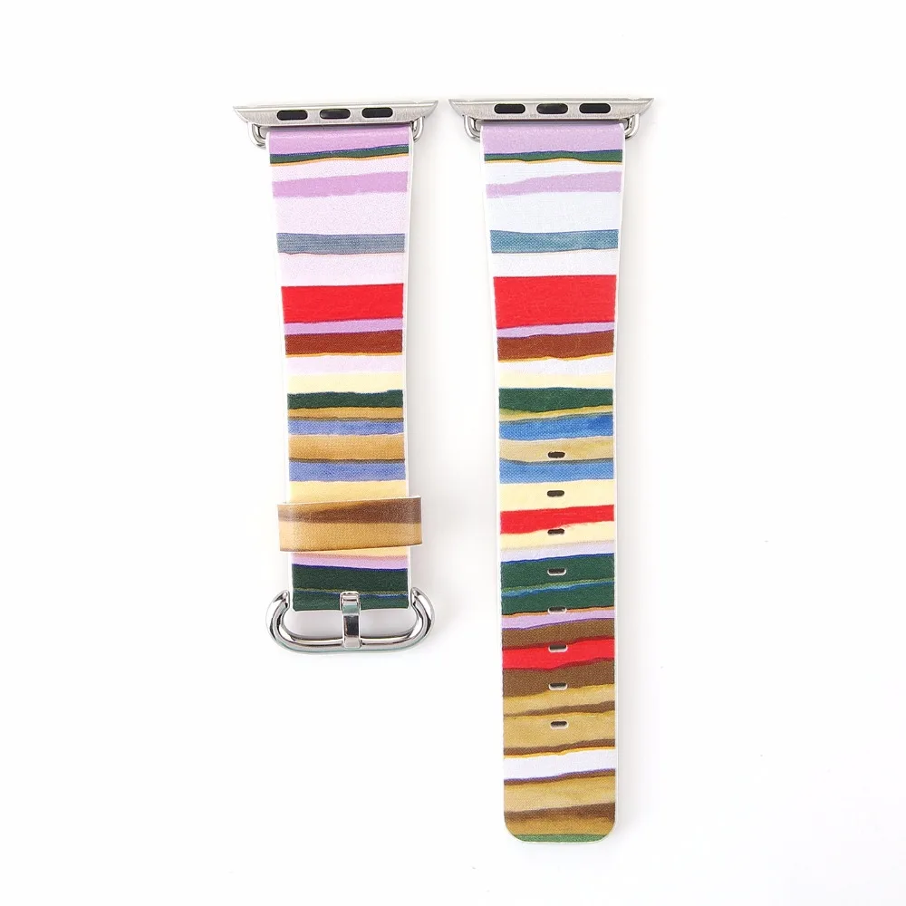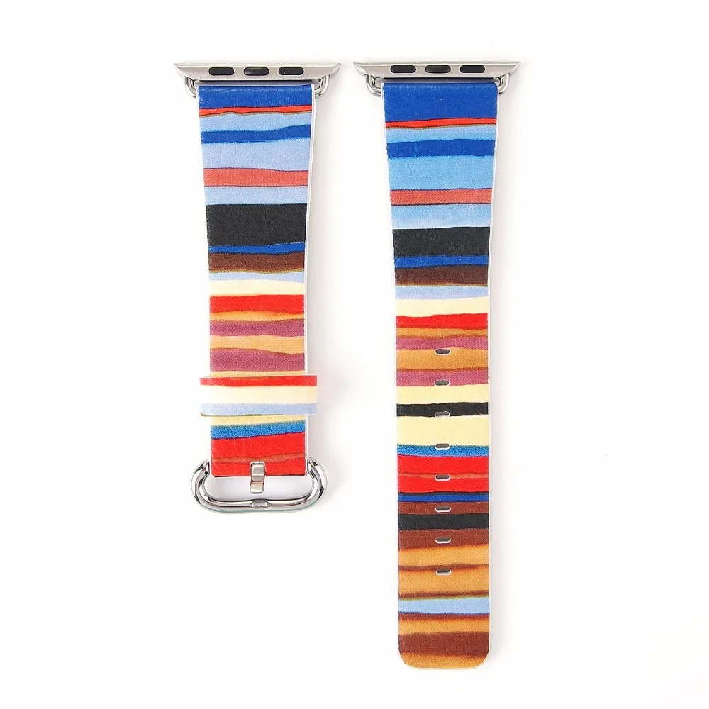Gallery for Stripe Leather Strap For Apple Watch Band Multicolor For Apple Watch Series 44/42/40/38 Leather Fashion Strap For Iwatch 4/3/2/1