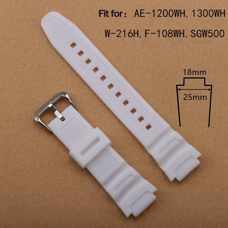 Gallery for Rubber Strap Stainless Steel Pin Buckle Strap Watch Wrist Bracelet Black Strap For Casio AE-1000W AQ-S810W SGW-400H / SGW-300H